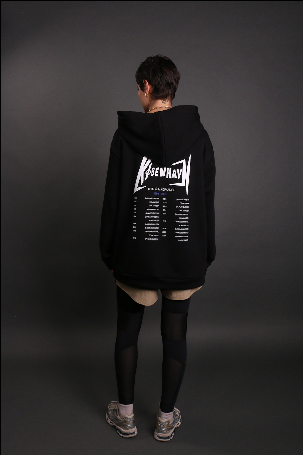 Through wardrobe studies we found out that the clothes that survive in the wardrobe are the clothes you have a special experience with. I therefore developed the print from a tour t-shirt from Metallica. The years printet on the back of the hoodie, are all the years in which FCK has won a championship.